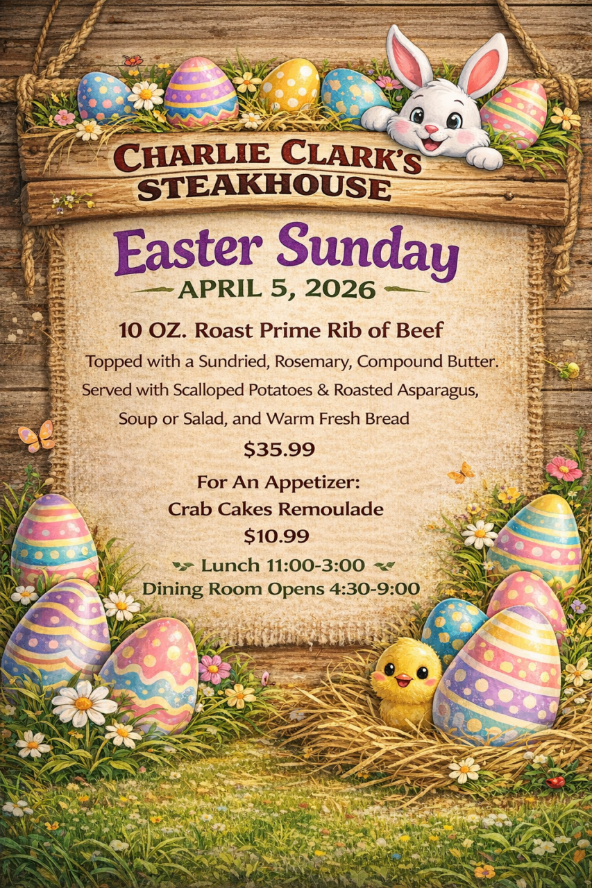 From Appetizers, Lunch or Dinner, Charlie Clark's can prepare your meal to go.